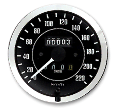 All of the Classic Speedometers, Tachometers and monitoring gauges pictured below are available with either Black or